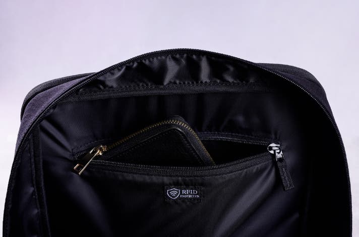 メインポケット内部には、電磁波遮断素材を使用した「RFIDブロックファスナーポケット」を搭載しました。