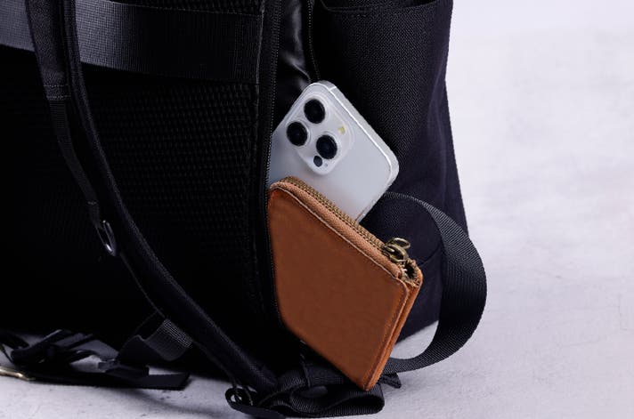 リュックを背負ったまま、あるいは片方の肩にかけた状態で、手を後ろに回せばスマートに取り出せる絶妙な位置に設計。会計時や改札前で慌てることはもうありません。