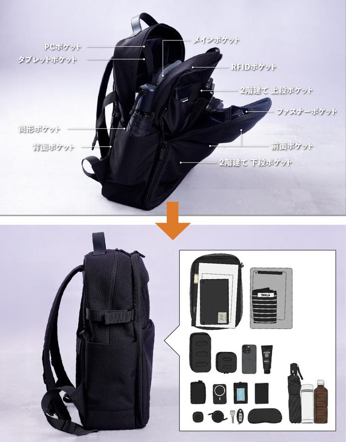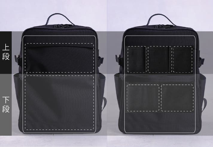荷物が下でゴチャつかない!3階建て収納で整理整頓できる【薄型リュックインバッグ】( 2023年12月)
