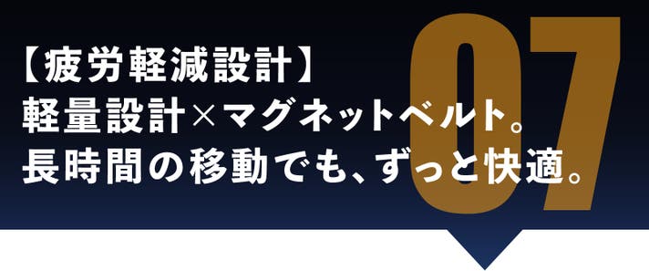 「目的地に着いた時の負担が軽減」。40代を過ぎ、体力的な負担を軽減したいと願うユーザーにこそ体感してほしい、優しさと機能の両立です。