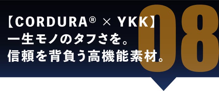 どんなに外装が丈夫でも、ファスナーが壊れてしまえばバッグとしての機能は終わりです。TIDY BP+は、世界中から信頼を寄せられる「YKK製ファスナー」を全面に採用しました。