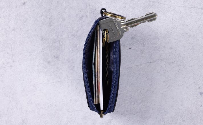 ポケット内部には、鍵を固定できる専用ストラップを装備。重力で底に沈んでしまうのを防ぎ、常に決まった位置に鍵を「浮かせた状態」でキープ。帰宅時の「鍵がない!」というあのストレスを物理的に軽減します。
