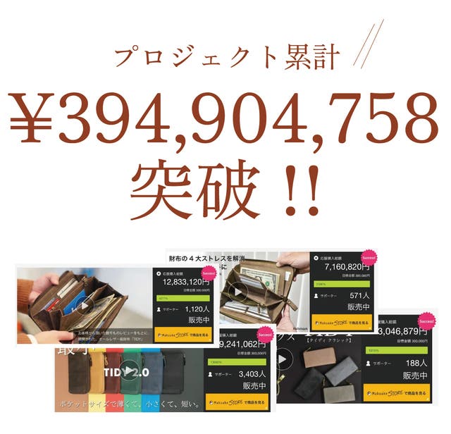 大阪の堀江と姫路の自社工場で革製品のデザインから製造まで手掛けているメーカー。 これまでMakuakeやクラウドファンディングでは総額5億以上調達。