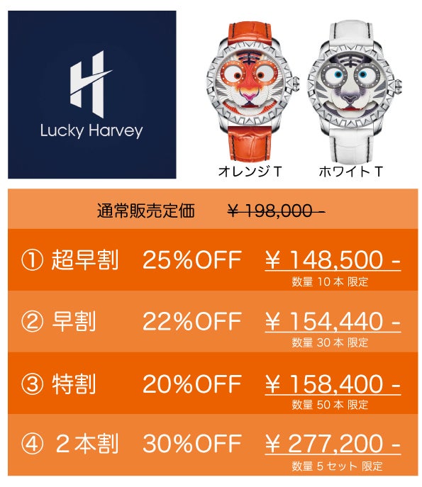 リターン品の配送が完了するまで、LuckyHarvey.JapanはLuckyHarveyの日本における独占販売権を有する正規代理店です。詳細に関しては、ページ下部のリスク&チャレンジをご確認ください。