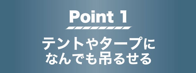 - サスペンダーにランタンやスピーカー、カトラリー等、テントやタープに自由自在に吊るせる!