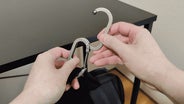可動部分は4.6cmまで開くので、椅子の背もたれや厚みのあるテーブルなど、さまざまな場所に引っ掛けて使えます。
