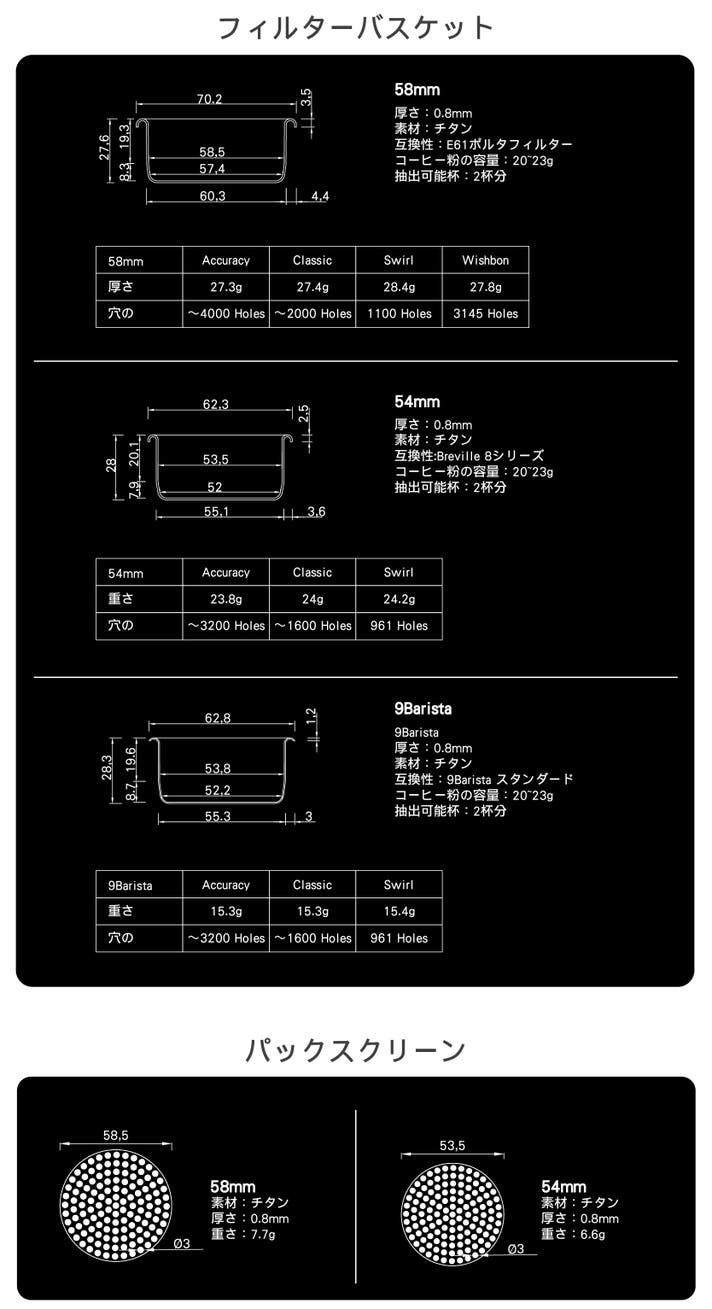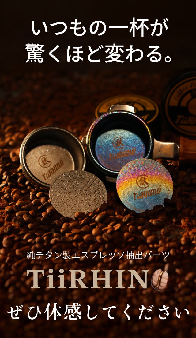 純チタン製の「TiiRHINO」は、2種類の精密フィルターバスケットと単層パックスクリーンを組み合わせることで、抽出のしやすさと、味わいのクオリティを同時に高めます。
