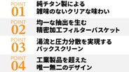 - 純チタン製で、ステンレスのような金属特有のにおいがなく、コーヒー本来のピュアな風味が楽しめる。