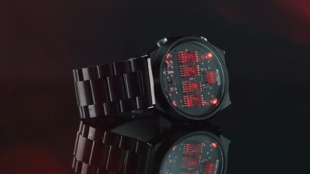 - セグで時間を表示。アニメーション&赤いバックライトで思わず時間を見たくなる腕時計。