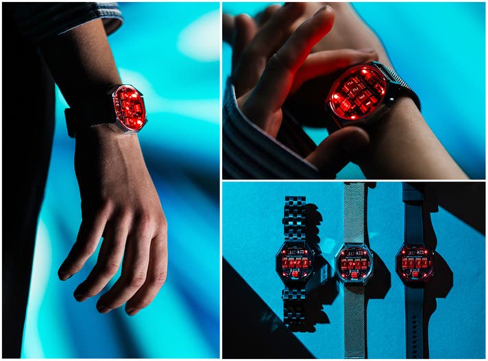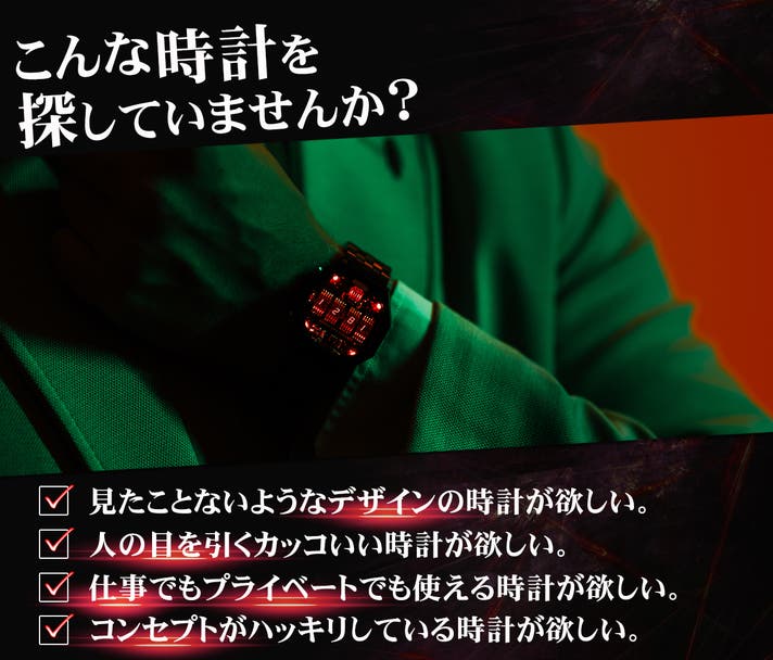 セグが動く時計と聞くだけでは古い時計に聞こえるかもしれませんが、TIMEREDはインジケーターとバックライトの赤い光によってレトロでありながらメカニカルで近未来的な印象を与えます。