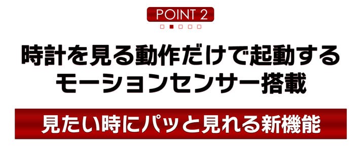 大きな変更点はモーションセンサーの搭載です。この機能により腕を傾けるだけで時計が起動し、すぐ時間を見ることができます。