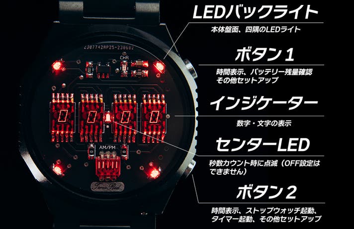 - セグアニメーション&メカニカルなバックライトで思わず時間を見たくなる腕時計。