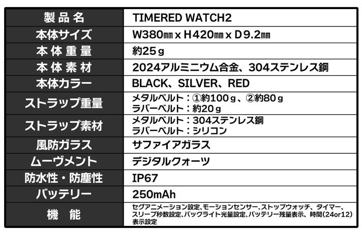 TIMERED2は従来のブラックとシルバーに加えレッドを追加した3カラーデザインでご紹介します。