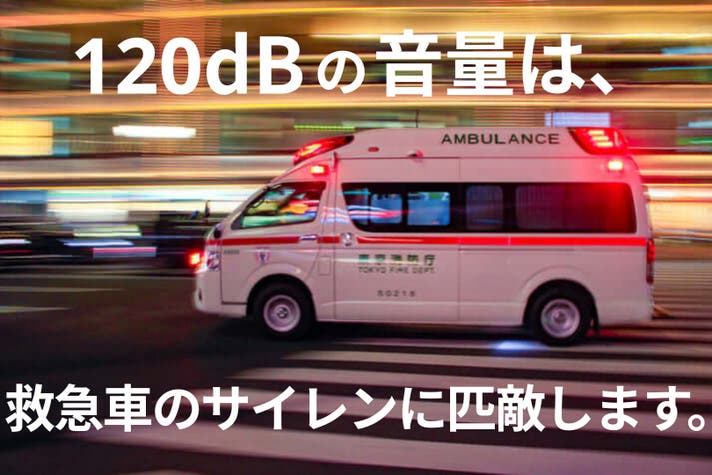 A. 最大で約120dBの音を発することができます。周囲の環境や吹き方により多少前後しますが、人の耳に届きやすい高音域を採用しています。
