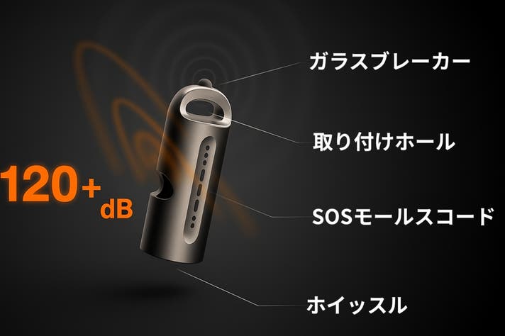 チタン製のボディに、「ホイッスル」と「ガラスブレーカー」