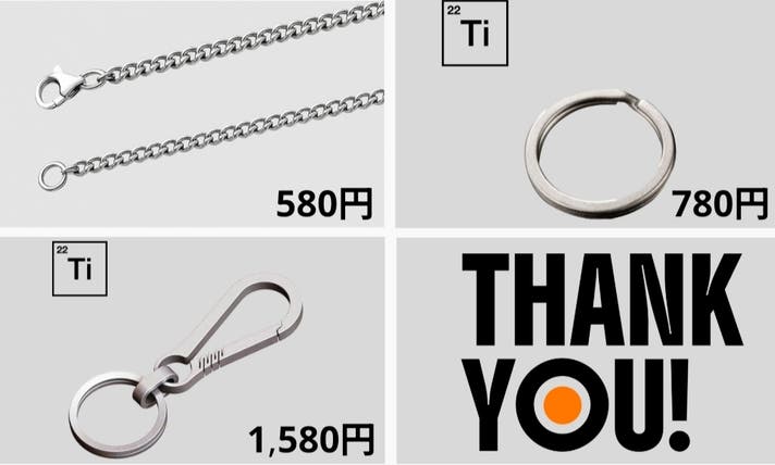 A. 付属のチタンキーリングやクイックリリースキーチェーンを使用して、鍵やバ