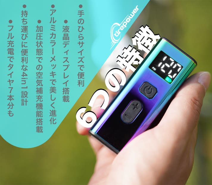 今回は、さらなる進化を遂げた【Tirepower】新モデルをお届けします。高級感あふれるアルミ合金ボディにカラーメッキ仕上げを施し、デザイン性と携帯性を両立。もっと美しく、もっとスマートに!