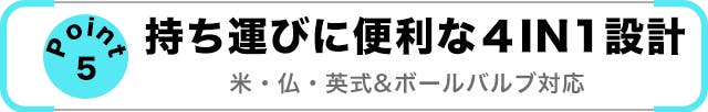 - 面倒なノズル交換は不要!米・仏・英式、さらにボールまでマルチに使える4in1ノズル搭載!