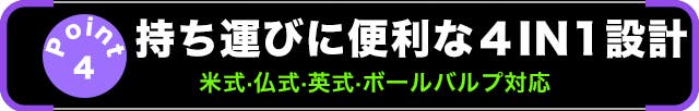 - 面倒なノズル交換は不要!米式・仏式・英式、さらにボールまでマルチに使える4in1ノズル搭載!