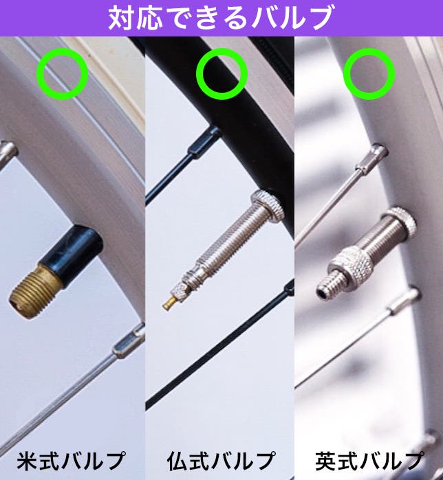 ※米仏英兼用エアホースの米式・仏式・英式バルブの切り替え方法は米仏英兼用アダプターと同様です。