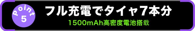 「Tirepower E7」は、サイクリング中のトラブルを強力にサポートする高エネルギー密度1500mAhバッテリーを搭載。