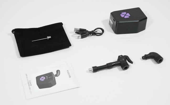 付属品:本体×1、米仏英兼用アダプター×1、米仏英兼用エアホース×1、ボール用空気針×1、USBーCケーブル×1、日本語取扱説明書、収納袋