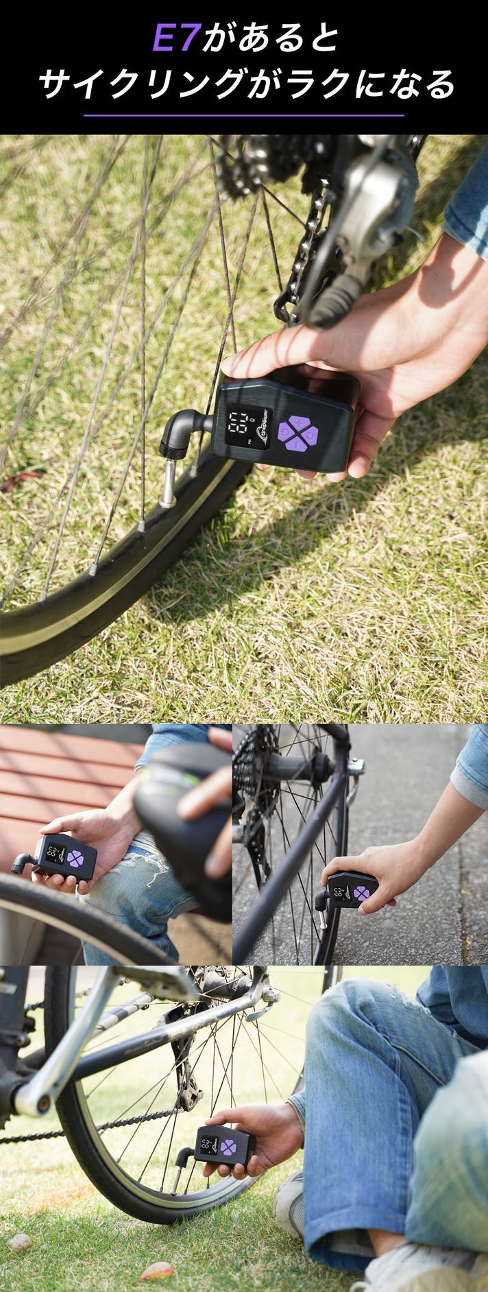 Tirepower E7は、自転車タイヤ、バイク、ボールに対応する超小型空気入れです。軽量コンパクトな設計で、ポケットやバッグにもすっきり収まり、携帯性に優れています。加圧状態での再始動やタイヤ圧の微調整機能を搭載し、ディスプレイ表示や自動停止機能なども充実。作業効率を高め、サイクリングシーンをより快適にサポートします。