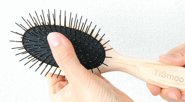 【TiSmoo】のブラシは根元がクッションになっているので、金属製のブラシを使っていながら頭皮に当たった時の刺激が少なく、とても心地よいブラッシングが楽しめます。