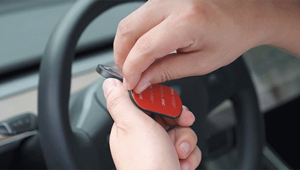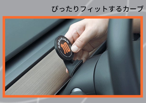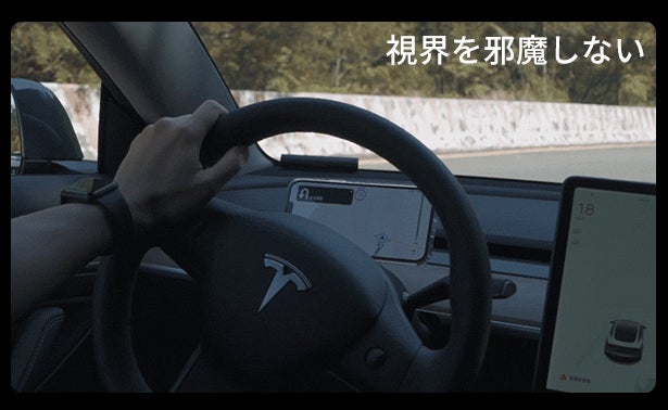 TITAはテスラのハンドルにぴったりフィットするカーブデザインで、これまでのダッシュボードと同じ位置にスマホを設置できます。