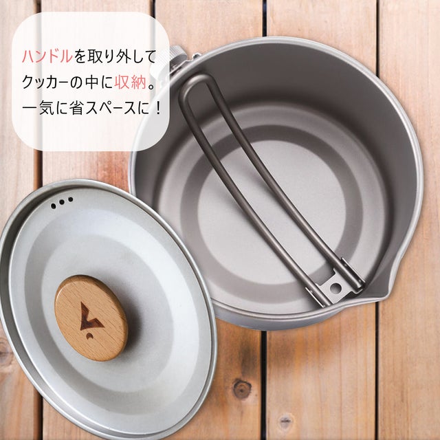 「TITANBLUE COOKER」はハンドルの取り外しが可能で、持ち運びの際に邪魔にならずクッカーの中に収納することができます。