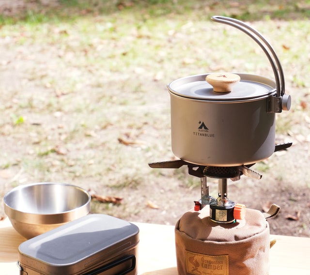 「TITANBLUE COOKER」キャンパーにはありがたい205gという超軽量設計になっています。