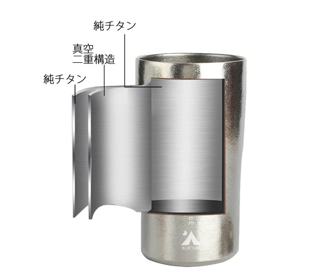 「TITANBLUE TUMBLER」は、外側と内側のチタンの間の空気の層で 真空二重構造 となっています。市場に出回っているステンレス製タンブラーに引けをとらない性能を有しています。
