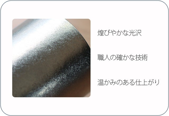「TITANBLUE」は職人の技術で絶妙な凹凸感を表現し、どこか温かみのある仕上がりになっております。