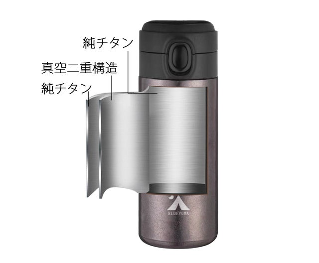 「TITANBLUE 4.0」は、外側と内側のチタンの間の空気の層で 真空二重構造 となっています。市場に出回っているステンレス製のサーモボトルに引けをとらない性能を有しています。