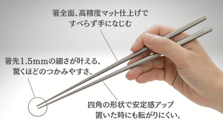 - マットな質感と直線美が日本の精密技術と融合。食卓を彩る一生モノのスタイリッシュなチタン箸。