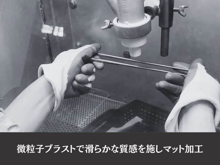 そこで、食べやすさを追求するためにお箸全面に微粒子ブラスト加工を施し、滑りにくく手になじむフィット感を実現。