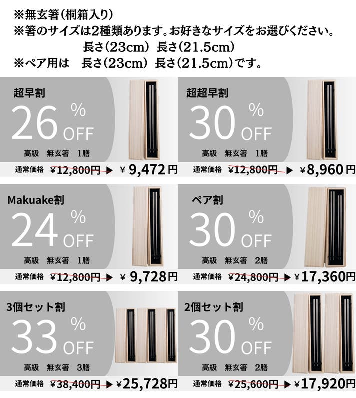 Makuake割【24%OFF】無玄箸(桐箱入り)×1膳 サイズ選べます。