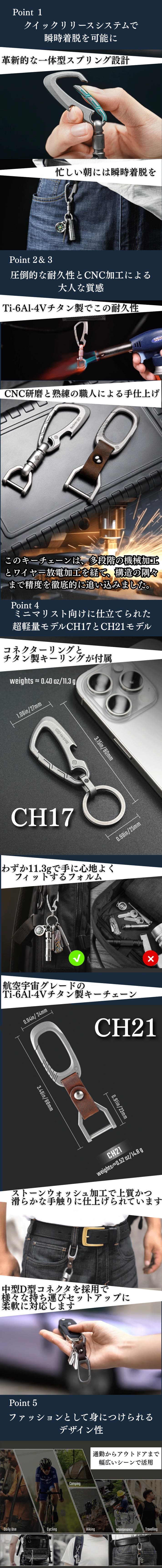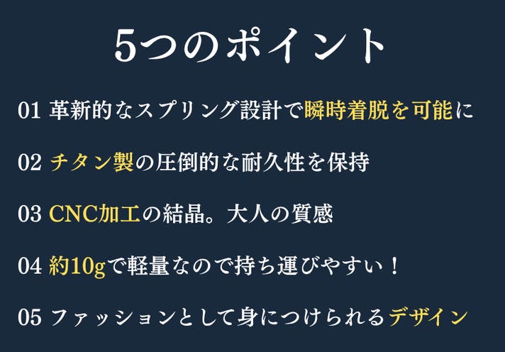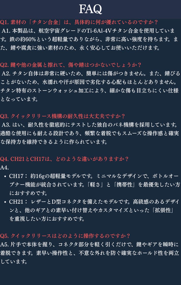 - 航空宇宙グレードのチタン合金製。軽量ながら高耐久・錆知らずの一生モノ。