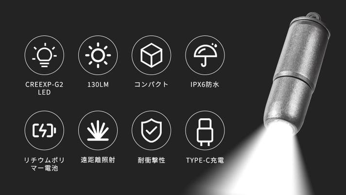 - チタン製素材で、高強度・耐食性・高耐久で、持ちやすくコンパクトなLED懐中電灯!