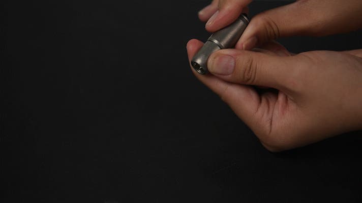 チタンは軽さと強度、さらに耐食性に優れる素材ですが、加工が難しいのが課題でした。何度も金型を改良し、細かい部品まで手作業で調整を重ねた結果、やっと掌に収まるサイズで、落下や水にも強い製品が誕生しました。