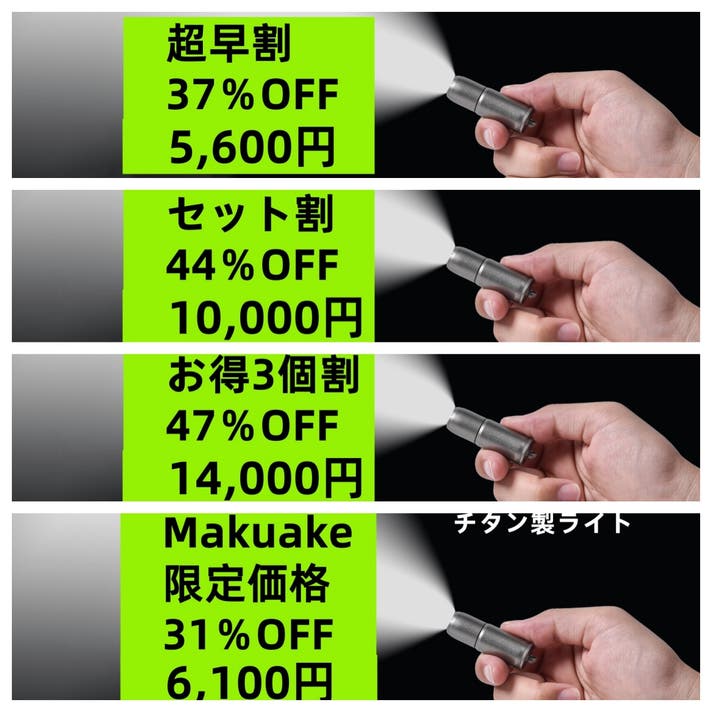 「Makuake(マクアケ)」は、実行者の想いを応援購入によって実現するアタラシイものやサービスのプラットフォームです。このページは、 プロダクトカテゴリの 「アウトドア、緊急時の備えに 、チタン製超軽量強力LED懐中電灯PoleShine」プロジェクト詳細ページです。