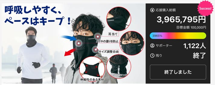 ランニング、サイクリング、通勤通学、冬のアウトドアまでマスクの煩わしさをグッと軽減します。使ってくださった皆さまの声に背中を押されて、こうしてまたご紹介できることがとても嬉しいです!今回もぜひ、応援よろしくお願いいたします!