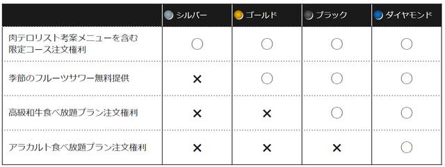 ダイヤモンド会員=高級和牛含むアラカルト食べ放題のご注文権利