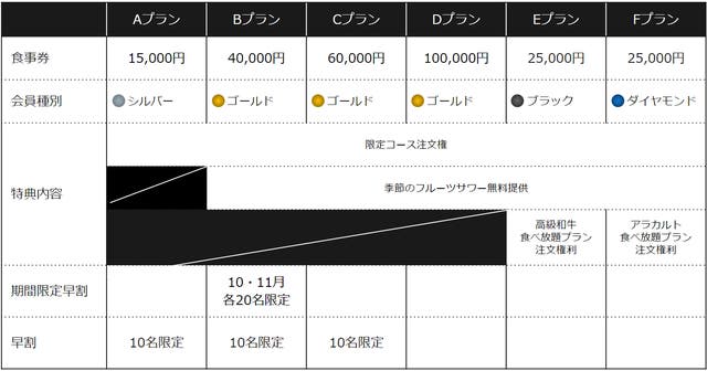 早割Cプラン総額80000円+α!食事券60000円+ゴールド会員権20000円
