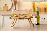 上質な木の温もりを感じるワインテーブルは、美しさと実用性が融合し、