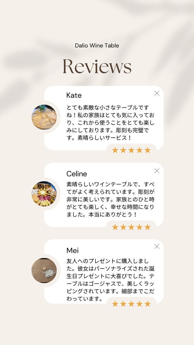 このテーブルでワインを傾けながら、素晴らしいひとときをお楽しみいただけることを願っています。