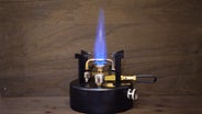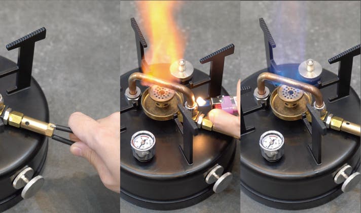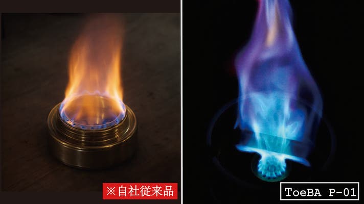 増圧構造による完全燃焼に近い青いジェット炎。