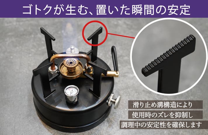 - 【SUS316 × 真鍮構造】 重い鍋も、そのまま乗せられる。耐荷重約25kg。