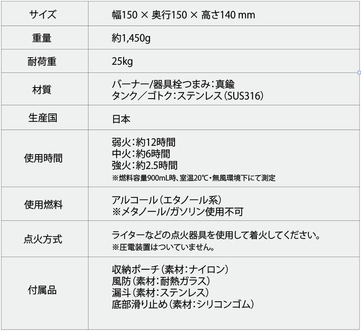 ※室温23℃・無風環境・同一鍋具・エタノール95%使用時の参考値(自社測定)