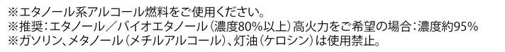 ※ガソリン、メタノール(メチルアルコール)、灯油(ケロシン)は使用禁止。